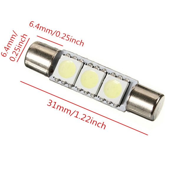 Liwiny 29/31MM 3 SMD Fuse Festoon 5050 Chip Car Led Sun Visor Mirror Light Bulb Source